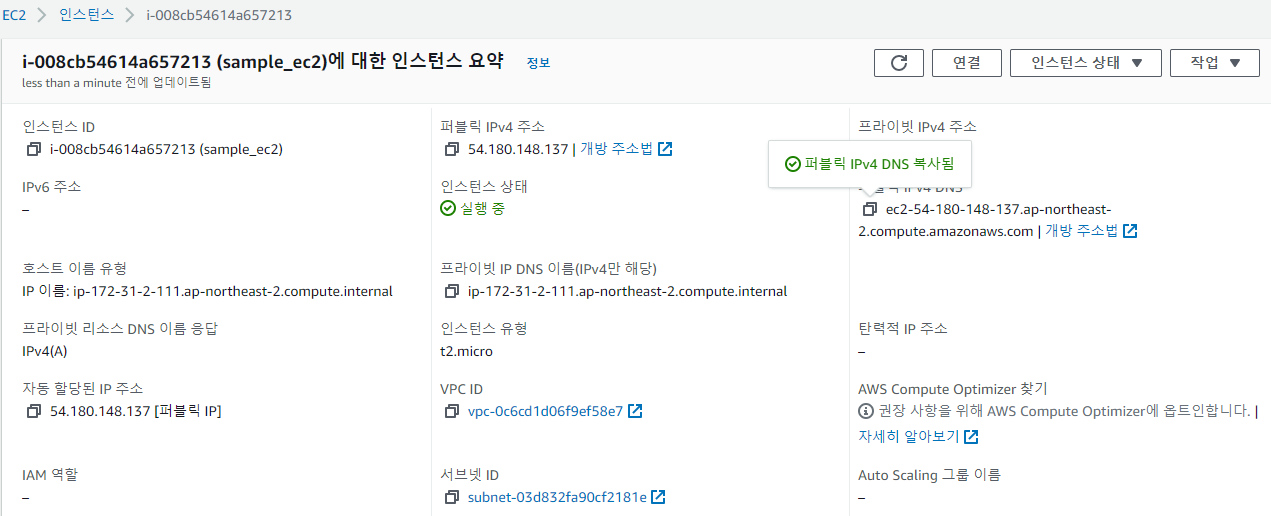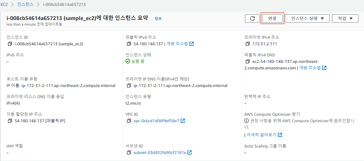 sample_keypair.pem 파일은 SSH 접속을 위해 필요 하므로 잘 보관 한다.