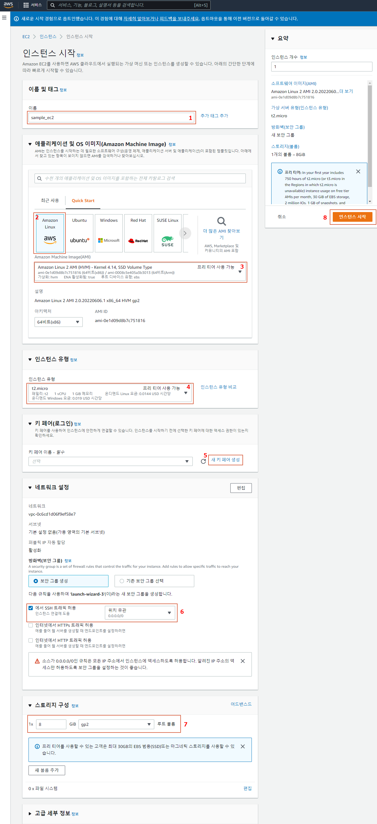 7. 스토리지 구성 (프리티어는 최대 30GB 까지 가능)