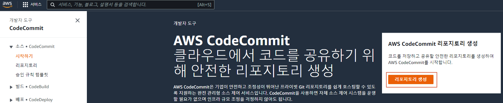 CodeCommit 생성