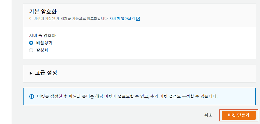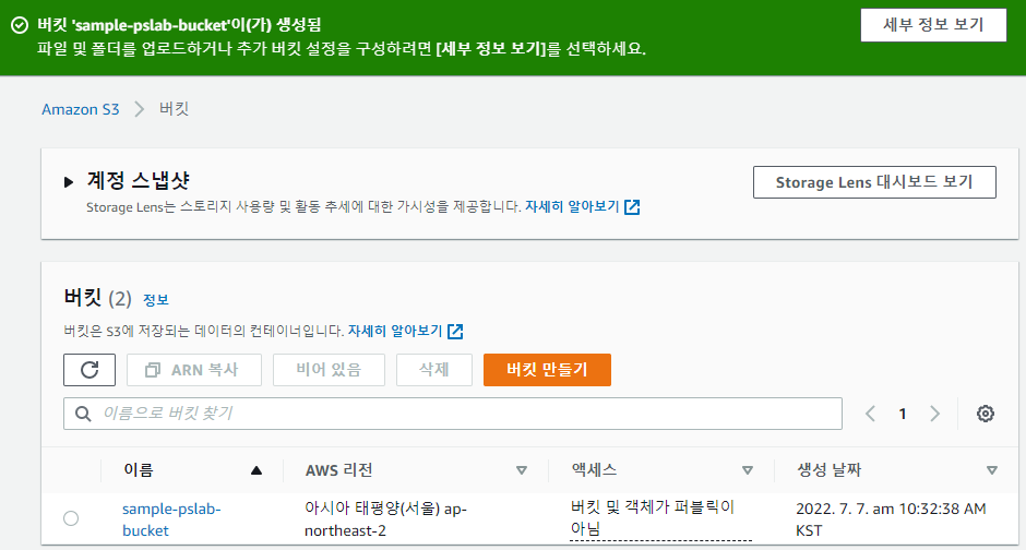 버킷 생성 완료