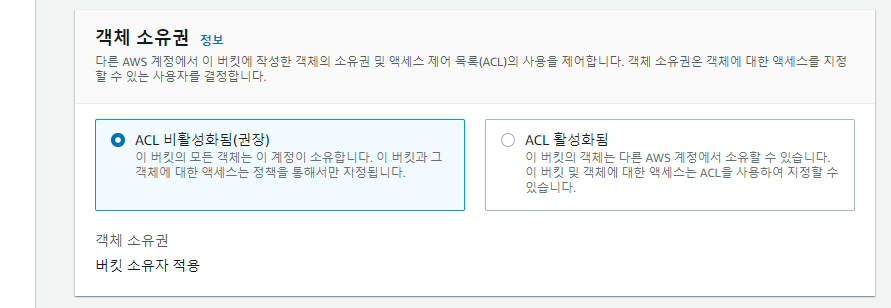 버킷만들기 - 객체 소유권 설정